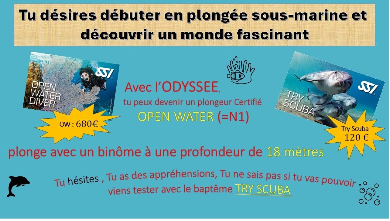 Venez vous entraînez avec l’Odyssée à Tournai et profitez d’une école de plongée avec 2 moniteurs à votre écoute. Réalisez des plongées en milieu naturel et passez vos brevets SSI.